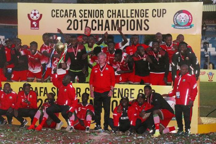 Harambee Stars lifting the CECAFA Senior Challenge Cup in 2017 Photo || CEFACA