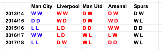 Except for Spurs, the Blues have been unable to get the better of their rivals consistently enough in recent years.