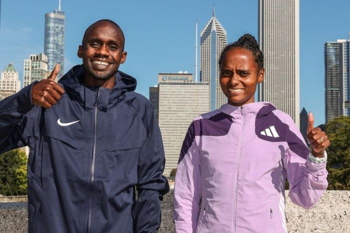 2025 Chicago Marathon Jacob Kiplimo from Uganda and Ethiopia’s Hawi Feysa. Image: CITIUS Mag