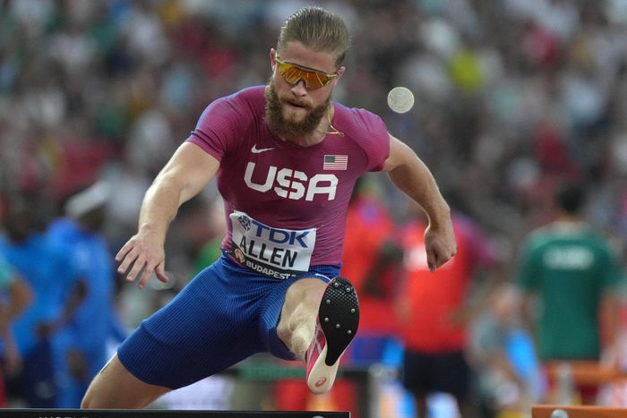 CJ Allen competes in the 400m hurdles at the World Athletics Championships Budapest on August 21, 2023, in Hungary.