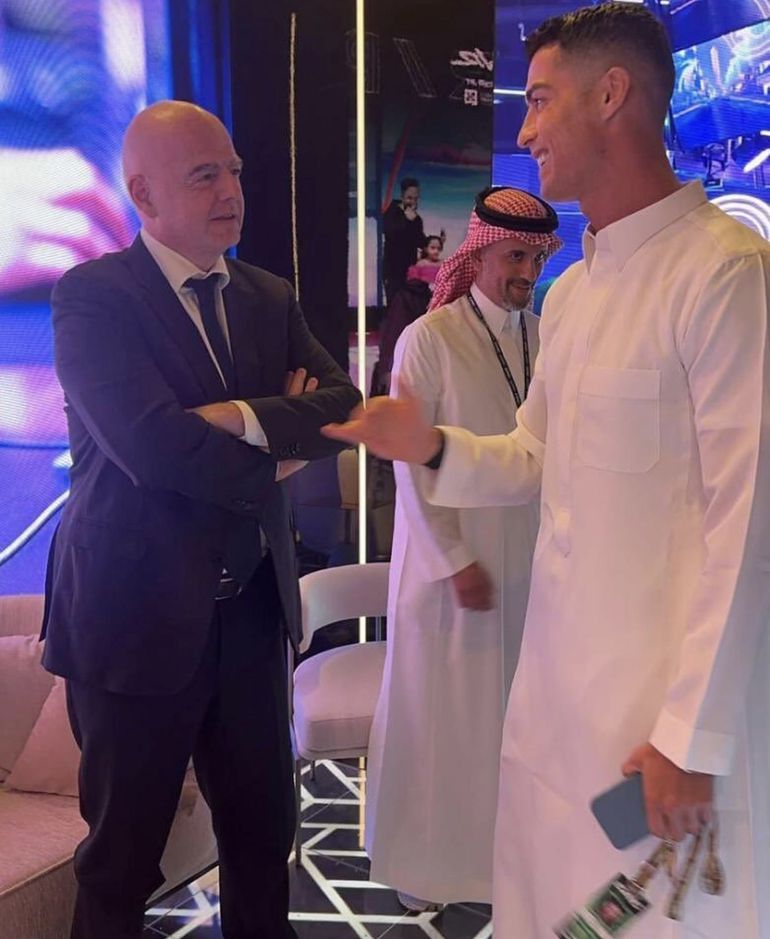The Portugal star and five-time Ballon d’Or winner was all smiles in a white robe as he stole the spotlight in the presence of several dignitaries including the Crown Prince of Saudi Arabia Mohammed Bin Salman Al Saud as well as FIFA president, Gianni Infantino.