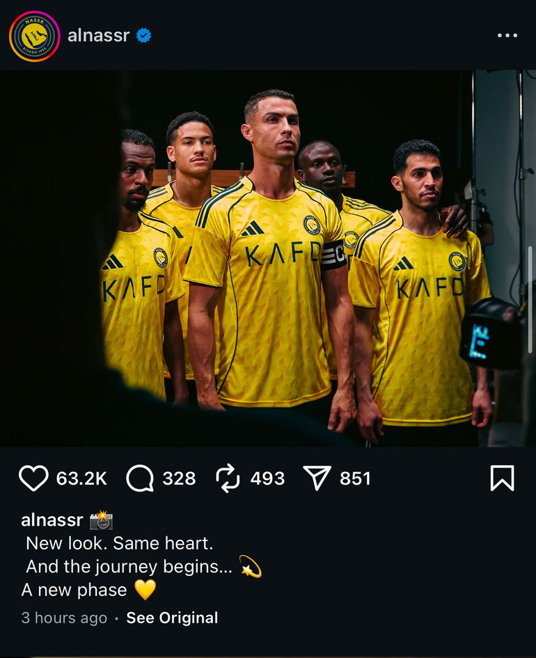 Unveiling the new jersey, the club declared, “A legacy that never fades. Every year, a new look, but the badge of Al-Nassr makes it timeless. Great and grand, always climbing the peaks. In every year, a new kit. And every year, the slogan of Nasr Al-Jazeera shines more beautifully.”