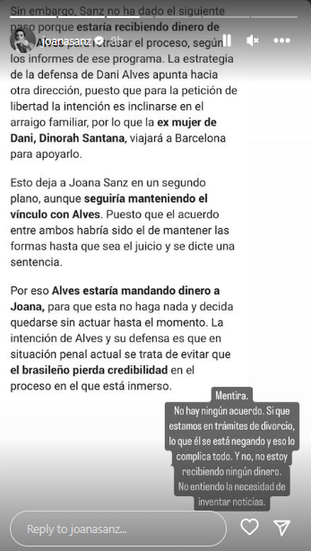 Joana Sanz also further dispelled reports that she was still benefitting financially from the imprisoned footballer.