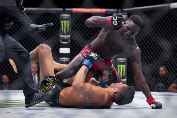 Paying homage to Israel Adesanya's incredible skills, Onama celebrated his victory by mimicking Adesanya's iconic gesture.