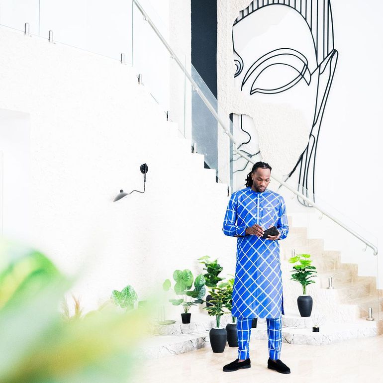 Achiuwa was wearing a blue and black check native and also had a video spraying money at the entertainers.