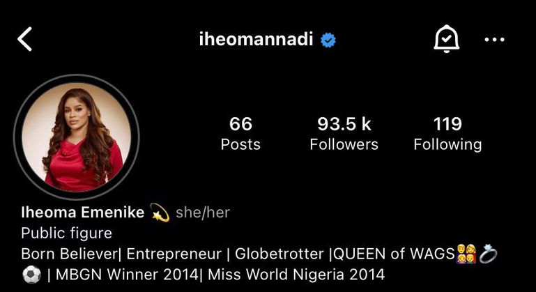 The former beauty queen has now changed her Instagram profile name once more to her husband’s last name, while Emenike has re-uploaded a post of himself and his beautiful wife on his page.