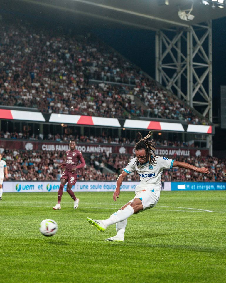Emran Soglo announces his arrival in Ligue 1 in style. (Photo Credit: Marseille/X)