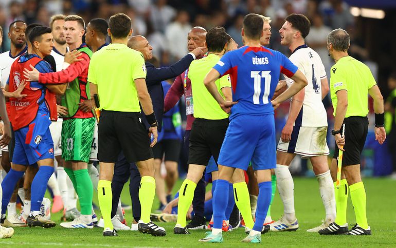 Declan Rice was also caught making some awkward statements towards the Slovakia bench after the game.