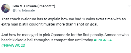 Although England missed starting the penalty shootout, Desire Oparanozie, and Alozie both missed the first two for the Super Falcons.