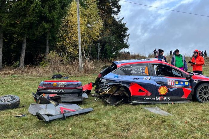 Lappi and his co-driver, Janne Ferm, emerged from the incident unscathed, but the same coul not be said for their vehicle.