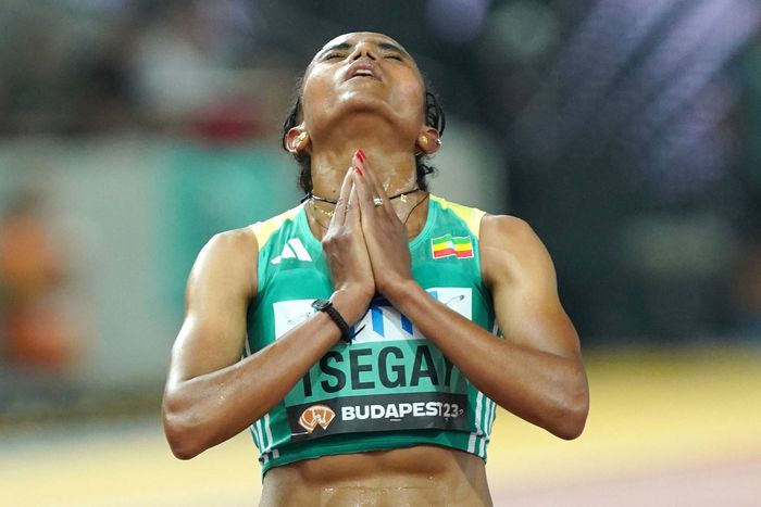 The Ethiopian clocked 14:00.21 to cross the finish line ahead of Kenya’s Beatrice Chebet who clocked a Personal Best time of 14:05.92. Tsegay mercilessly destroyed Kipyegon's world record time which stood at 14:05.20.
