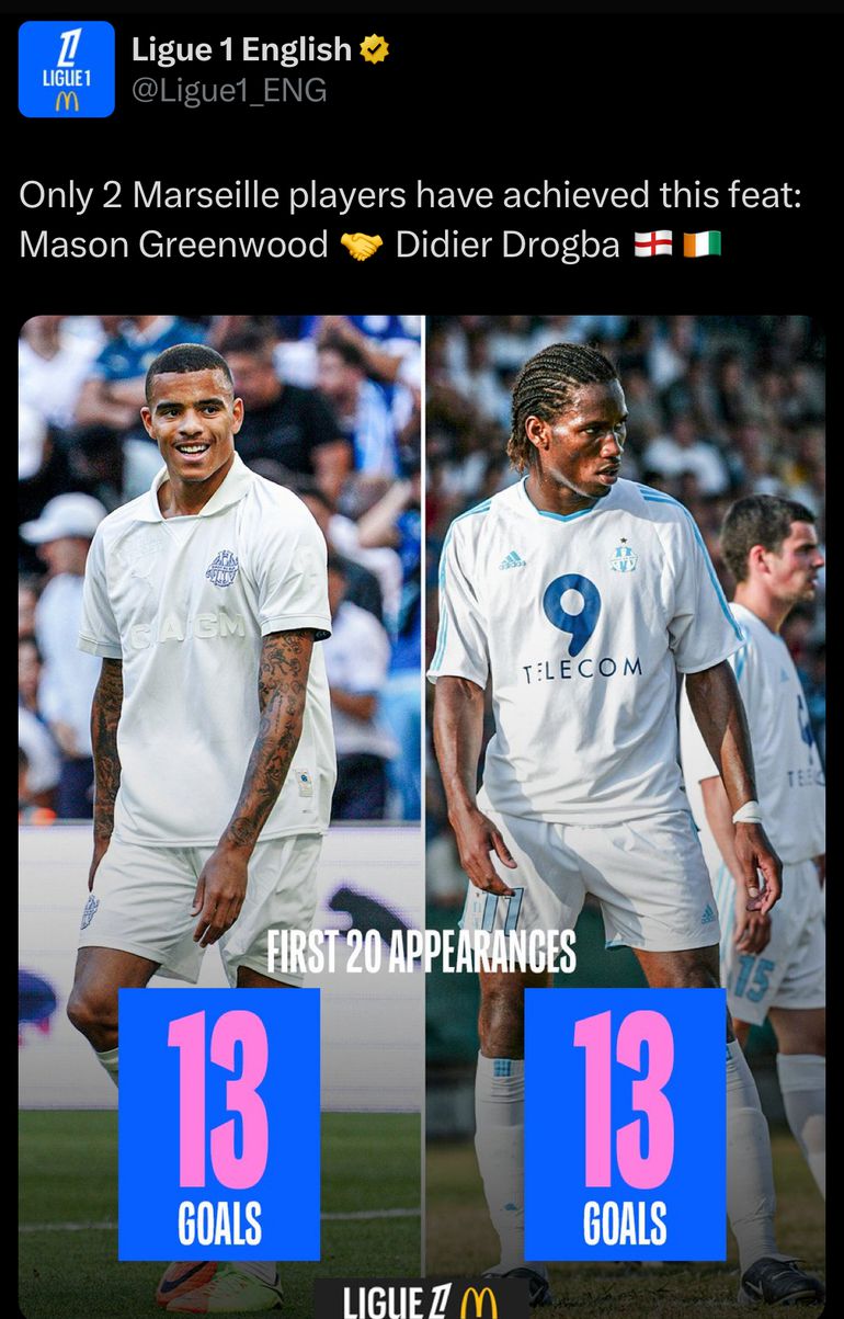 Mason Greenwood has made a stunning impact at Marseille, matching the impressive start of club legend Didier Drogba.