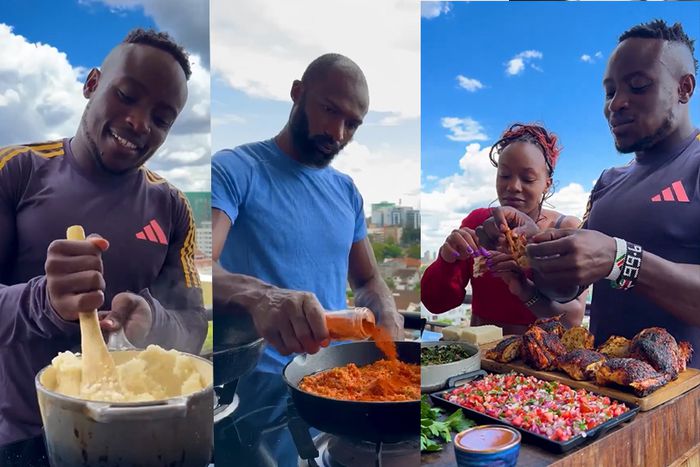In his latest culinary escapade, Ombachi hosted sprinter Ferdinand Omanyala and his wife, showcasing their cooking prowess as they prepared a delectable spread featuring peri peri chicken, Ugali, and Black Nightshade (managu) on his balcony.