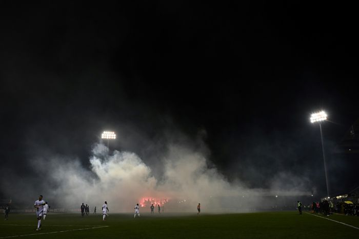 Referee Bastien Dechepy ordered the players back into the changing rooms after just four minutes of the game due to thick smoke on the field after an object was thrown near the hosts' goalkeeper, Cedric Mensah.