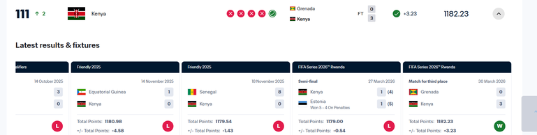 Kenya’s big win over Caribbean side Grenada has had a positive impact on their FIFA ranking following the latest update.
