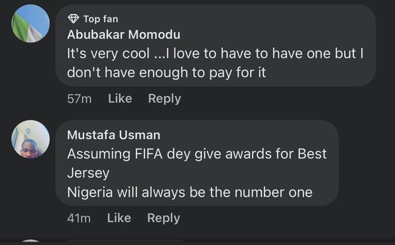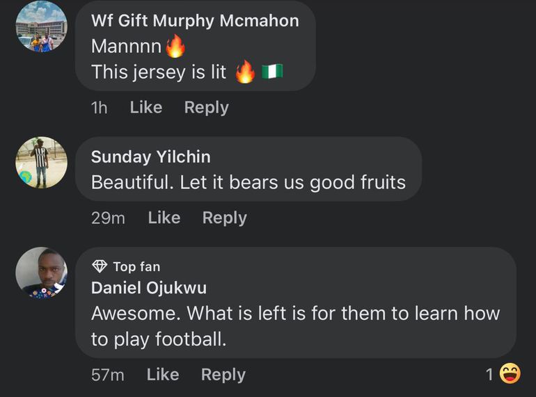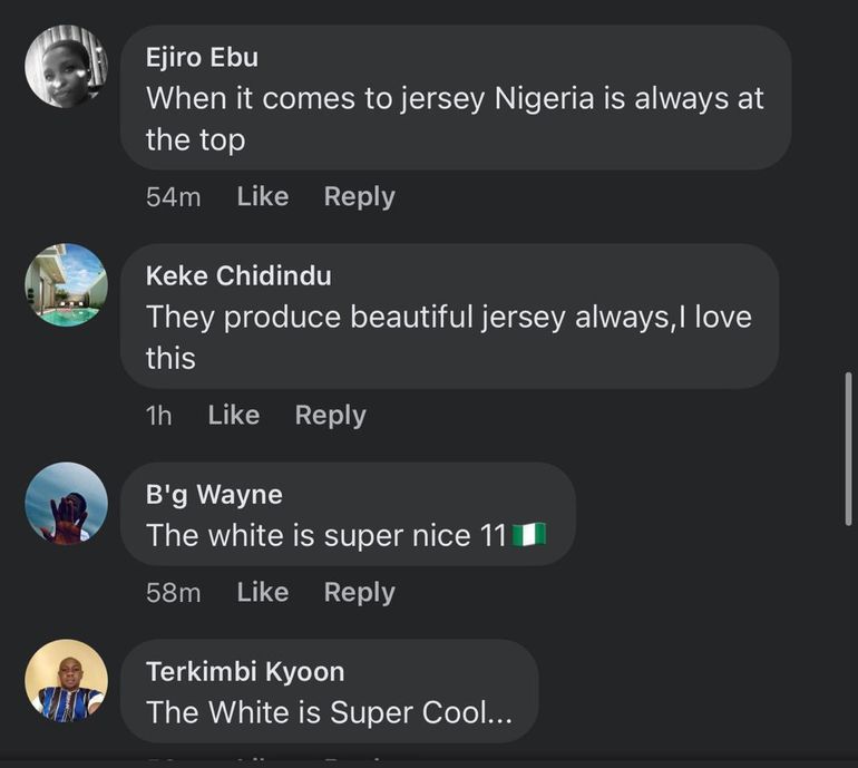 Nigerian football fans, while reacting to the new kit complimented the design, and rated it the best yet in recent times.