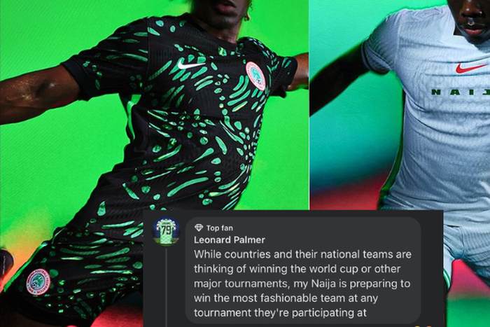 Sports merch company Nike shared pictures of the original Super Eagles' new home and away jersey, and the photos have been trending on microblogging platform X (formerly Twitter).