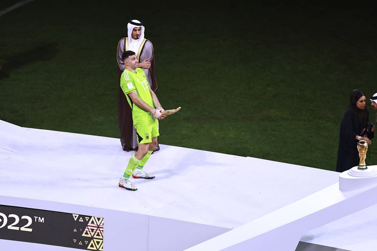 Martinez won the golden glove and he celebrated cheekily after receiving his prize in Lusail Stadium in Qatar.