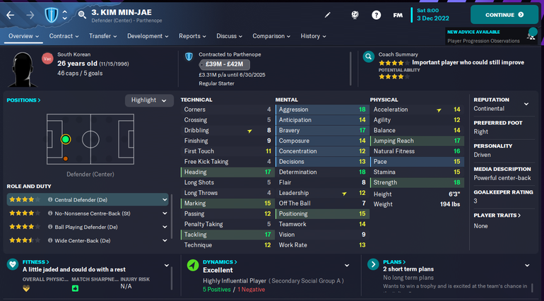 Kim Min-Jae represents everything required of a modern-day defender and is quite imposing in games. He’s one of the best central defenders in Football Manager 2023 and we recommend you add him to your shortlist sooner rather than later.