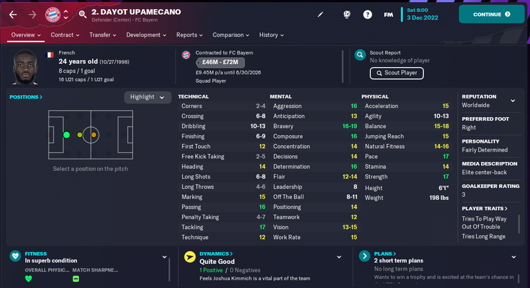 Upamecano is one of the best central defenders in Football Manager and is worth buying without having to break the bank.