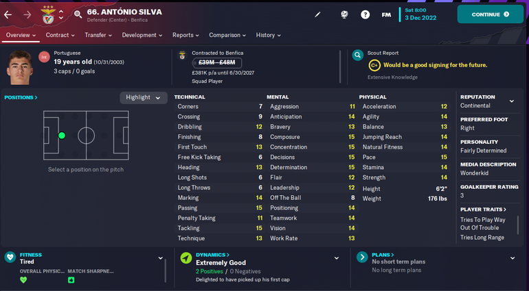 The 19-year-old is already a starter for his club side and is one of the best young central defenders on Football Manager 2023.