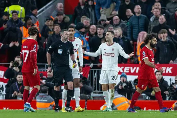English referee Michael Oliver showed Manchester United right-back Diogo Dalot the exit at Anfield as the latter drew 0-0 with nemesis Liverpool in the Premier League on Sunday.