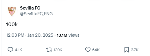 Ola's hopeful tweet at Sevilla F.C | Credit: X(@TheRealOlagreat)