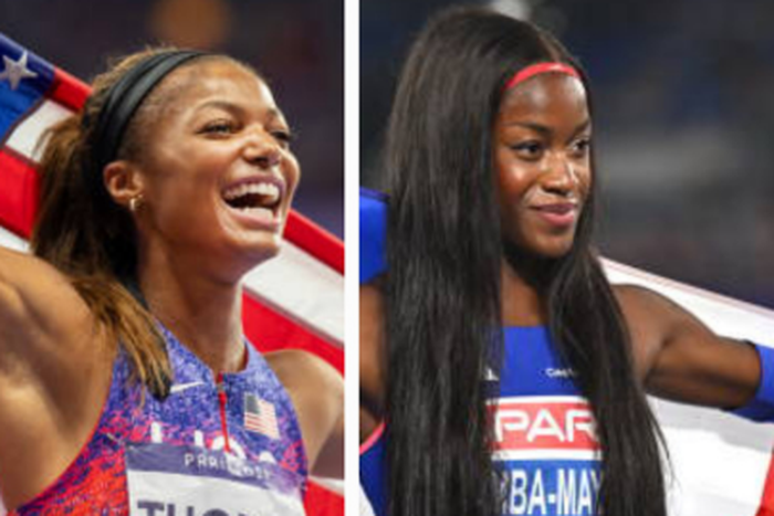 (L) Olympic champion Gabby Thomas (R) Olympic silver medalist Cyrena Samba-Mayela