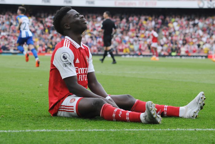 Arsenal's Buakayo Saka frustrated after throwing away a goal scoring chance|Imago