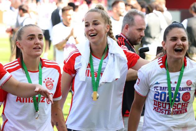 Giulia Gwinn celebrating Bayern Munich's Bundesliga title