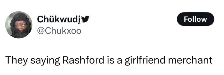 Perhaps the sharpest jab came from a fan who quipped, “They saying Rashford is a girlfriend merchant.”