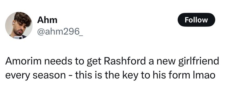 The internet wasn’t done teasing, as another comment suggested, “Amorim needs to get Rashford a new girlfriend every season — this is the key to his form lmao.”