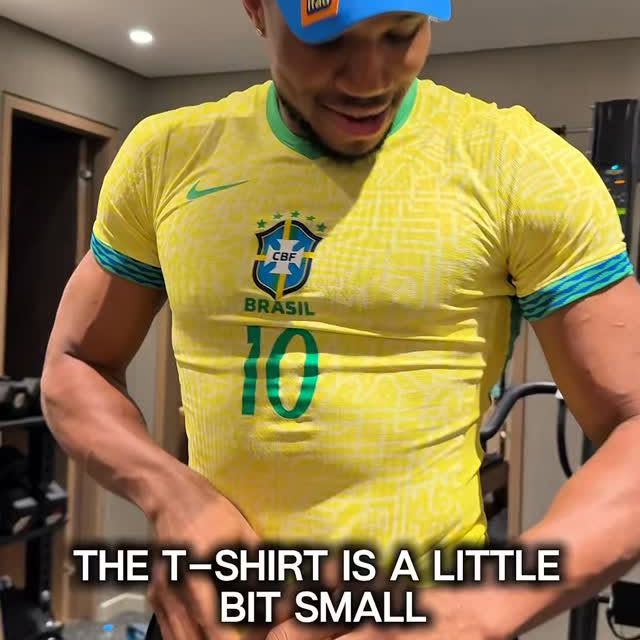 The Milwaukee Bucks forward was seen trying on the bright yellow Brazil jersey adorned with the number 10—a nod to Vinicius Jr.'s.