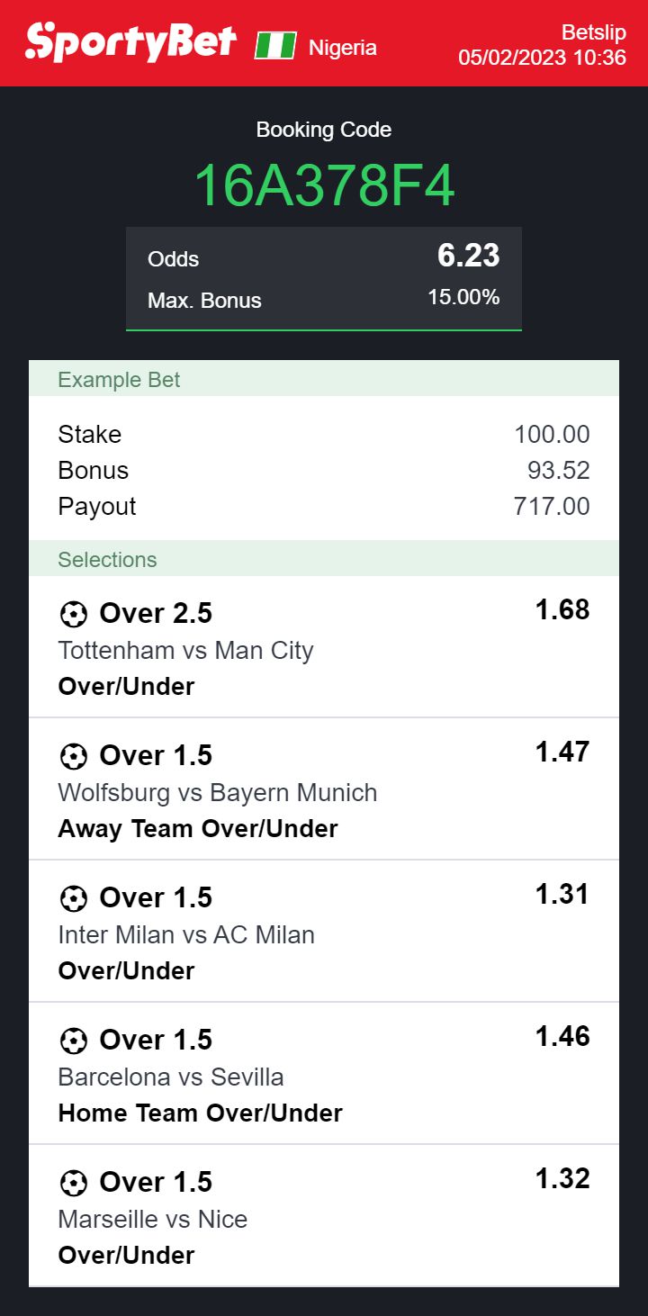 Total odds on Bet9ja: 6.23 odds
