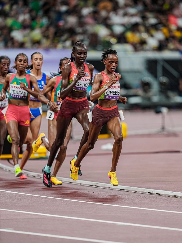 The defending champion would surge forward with three laps remaining and this strategy seems to have played to Chebet’s advantage as she tracked her every move.