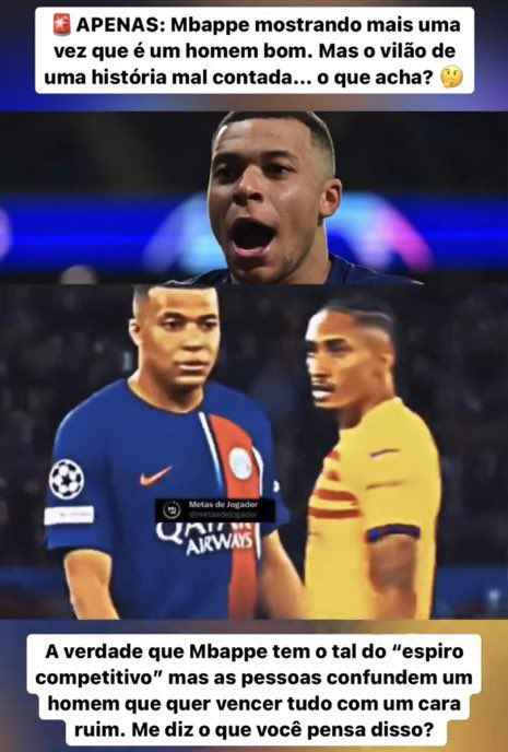 A Brazilian football page praised Kylian Mbappé on Instagram, stating “Mbappé is once again showing he is a good guy, the victim of a poorly told story…people confuse a guy who wants to win everything with a bad person.”