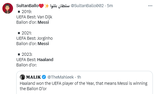 Following Haaland's victory there was a debate as to if Messi's World Cup win was ignored to give Haaland the award.