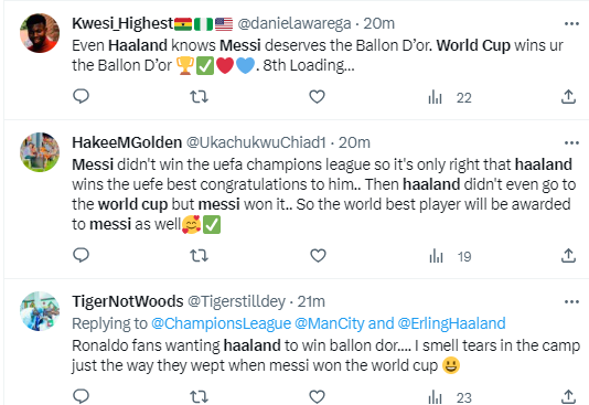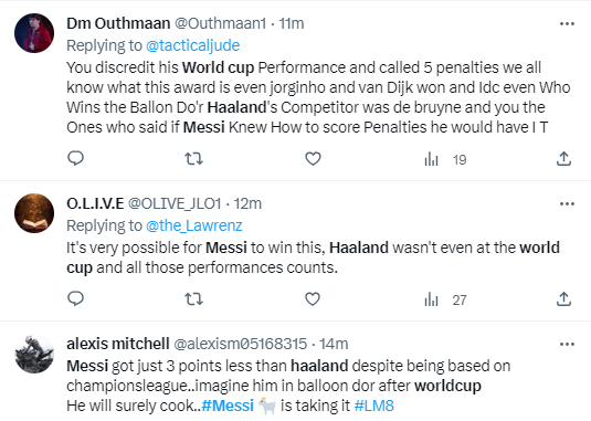 There were some fans who believed that Messi's exploits leading Argentina to the World Cup would be enough for him to win the award ahead of Haaland.