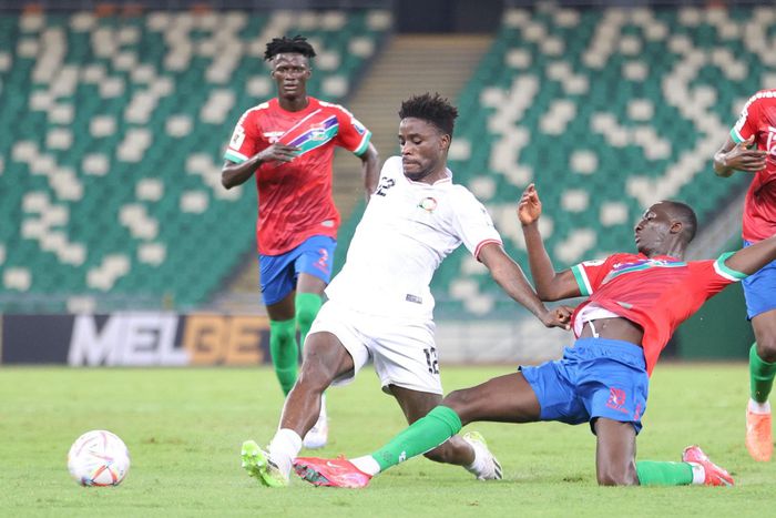 Kenya's Richard Odada vies for the ball during their World Cup qualifieragainst Gambia. Photo/FKF Media