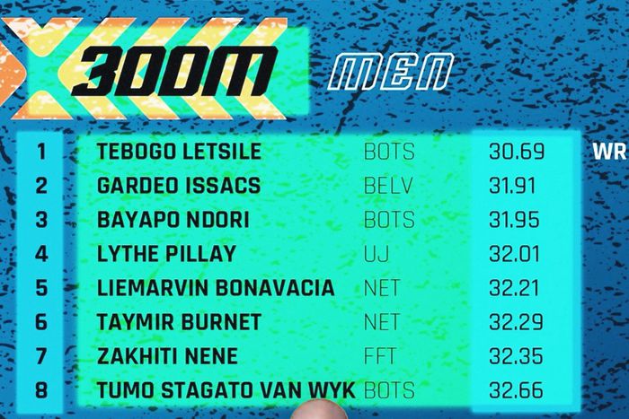 Tebogo smashed the world 300m record following an incredible run at the Simbine Curro Classic in South Africa, running 30.71, to beat South African Wayde van Niekerk's mark of 30.81 set in Ostrava, Czech Republic in 2017.