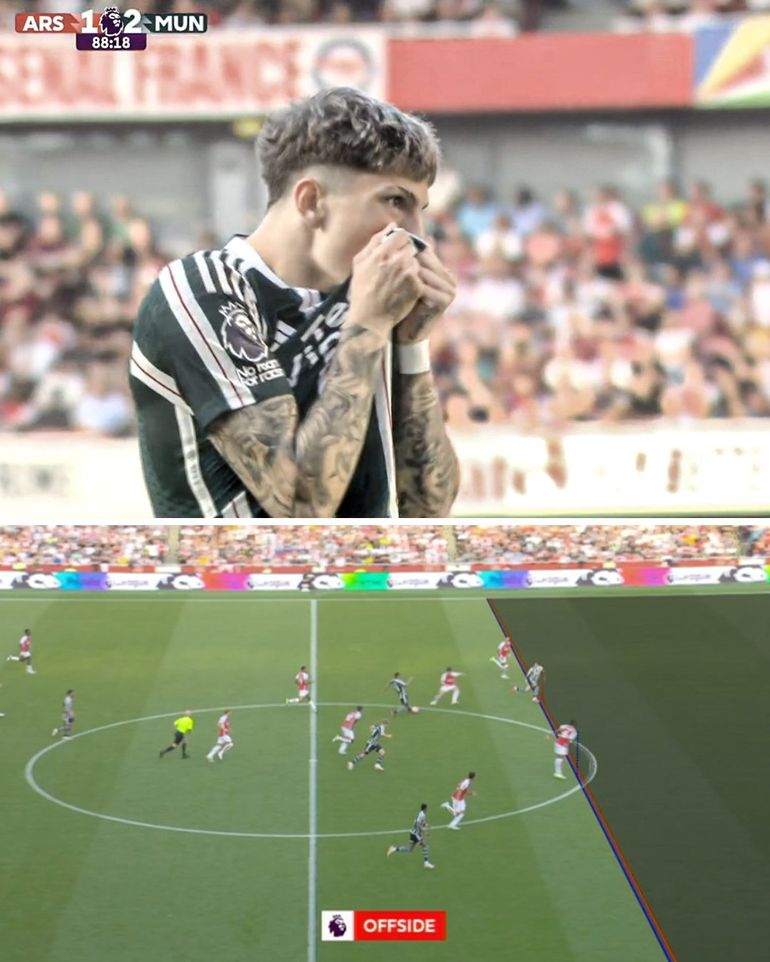 Garnacho scored in the 88th minute to make it 2-1, only for VAR replays to show he was just ahead of Gabriel as he was played through on goal.