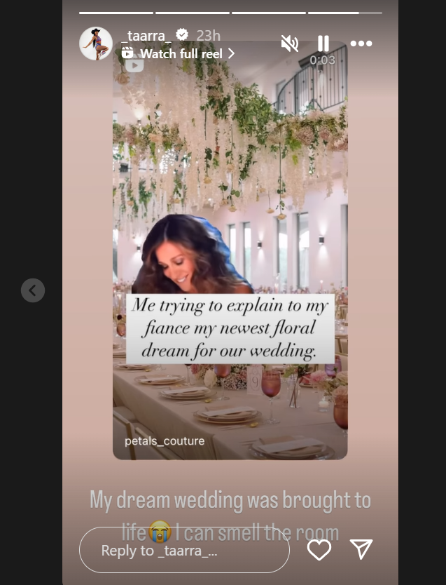 In her Instagram story, the long jumper could not hide her excitement and nostalgia for her big day, writing, “My dream wedding was brought to life. I can smell the room.”