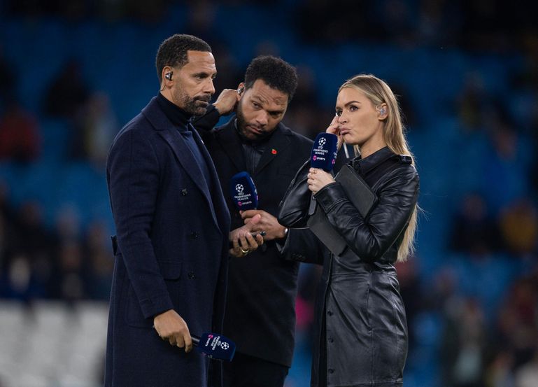 (L-R) Rio Ferdinand, Joleon Lescott and Laura Woods on UCL Matchday coverage on TNT Sports | Credit: IMAGO