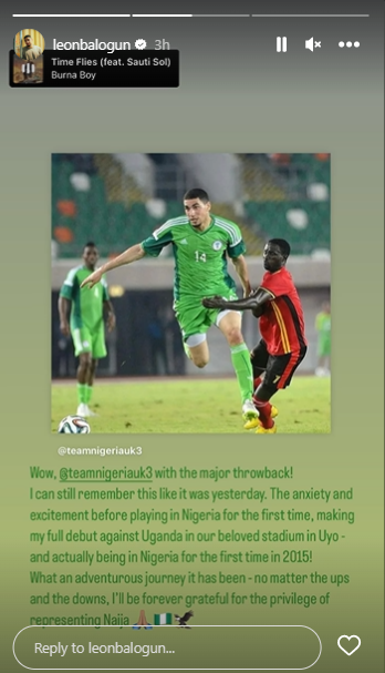 The German-born defender took to his Instagram story on Thursday, to respond to a throwback post of himself representing Nigeria in 2015 following his full debut in Uyo.