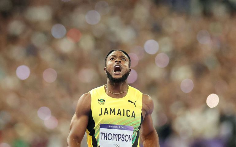 Thompson dominated the men’s 100m race, crossing the finish line first in 9.85 seconds ahead of Great Britain’s Zharnel Hughes, who came in second in 9.91 seconds. American Trayvon Bromell sealed the podium in 9.94 seconds.