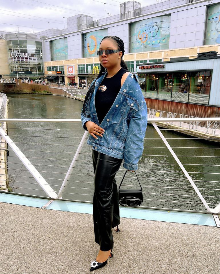 Taking to her Instagram page on Thursday March 2, the stylish businesswoman shared some photos of herself rocking a Denim jacket and a Diesel logo cutout black tank vest on black leather pants while holding a Diesel logo-plaque tote bag.
