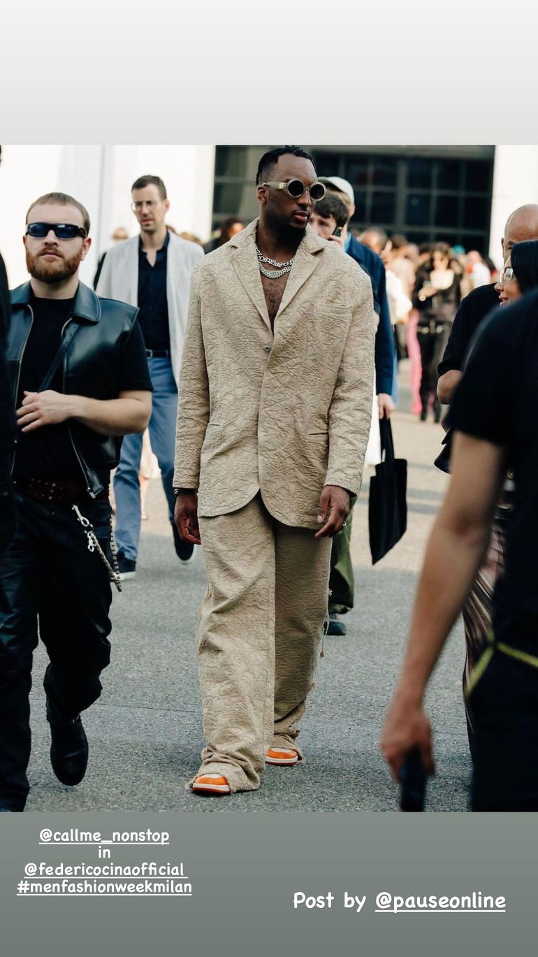 Okogie was in Milan for an NBPA conference and also attended Milan Fashion Week.