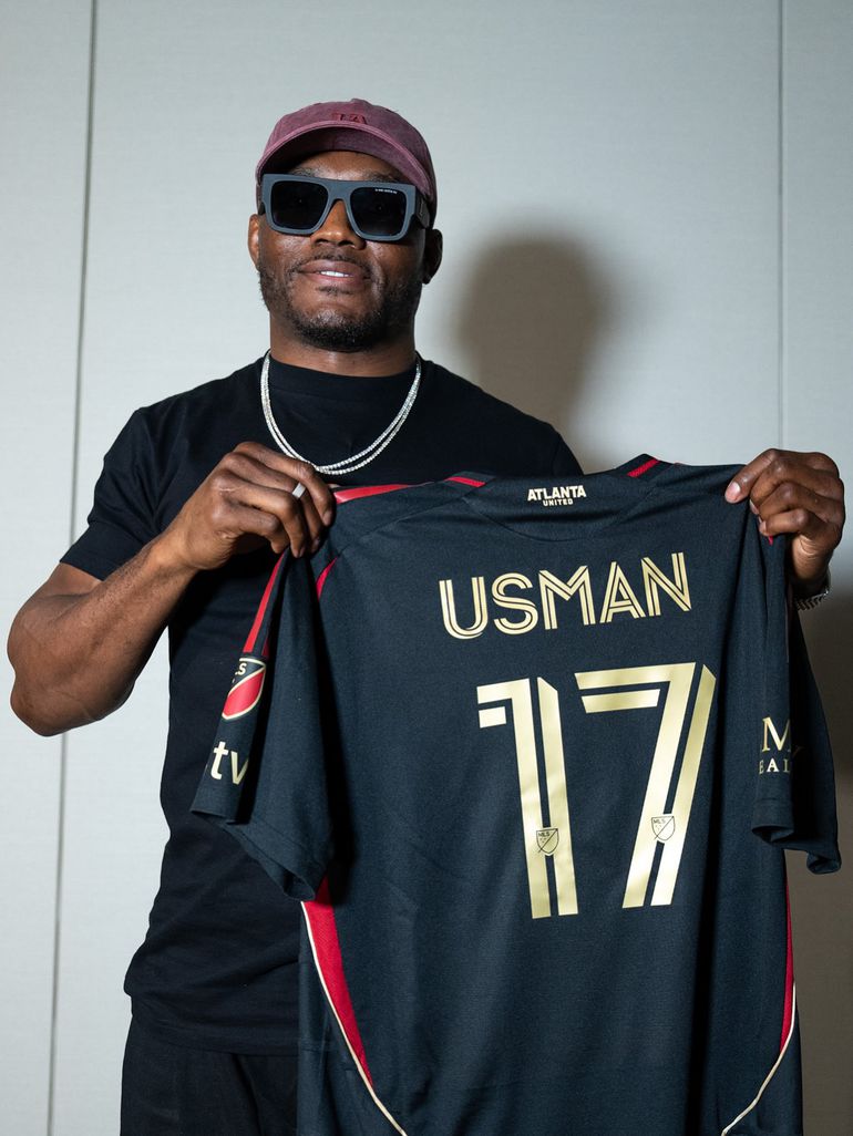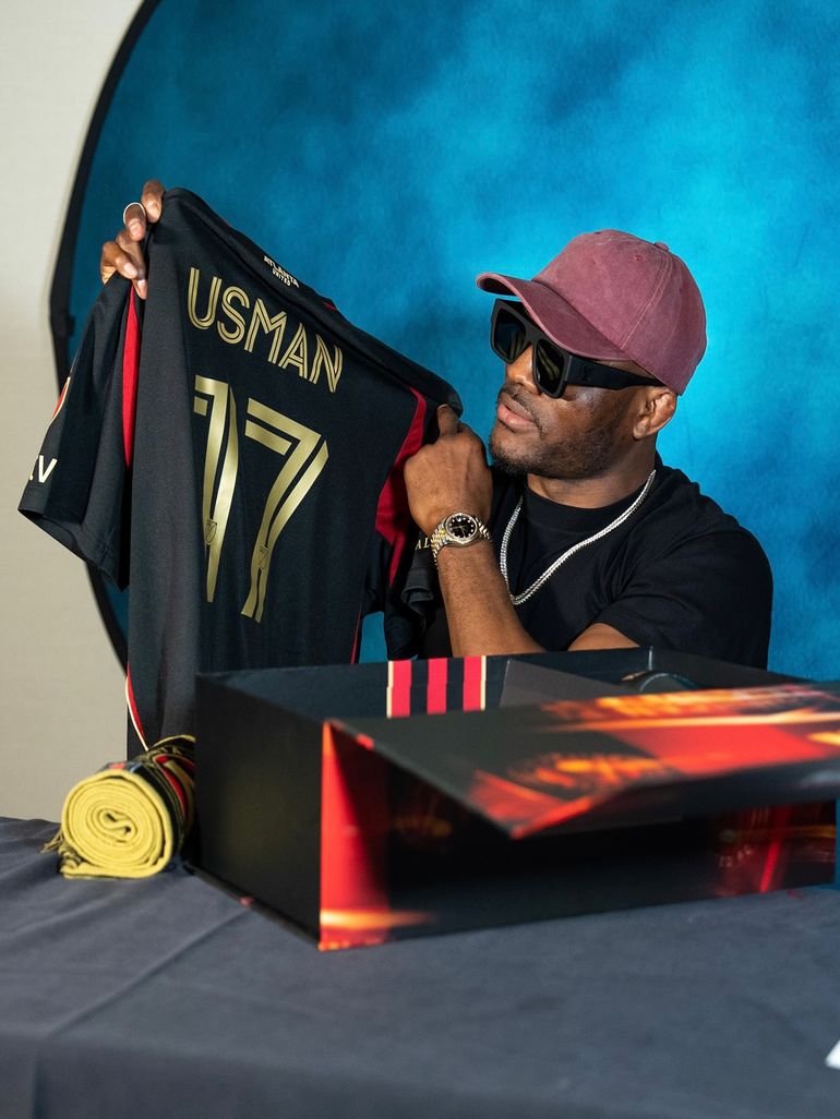 The pictures shared by UFC features Usman proudly holding the black-and-red Atlanta United jersey.