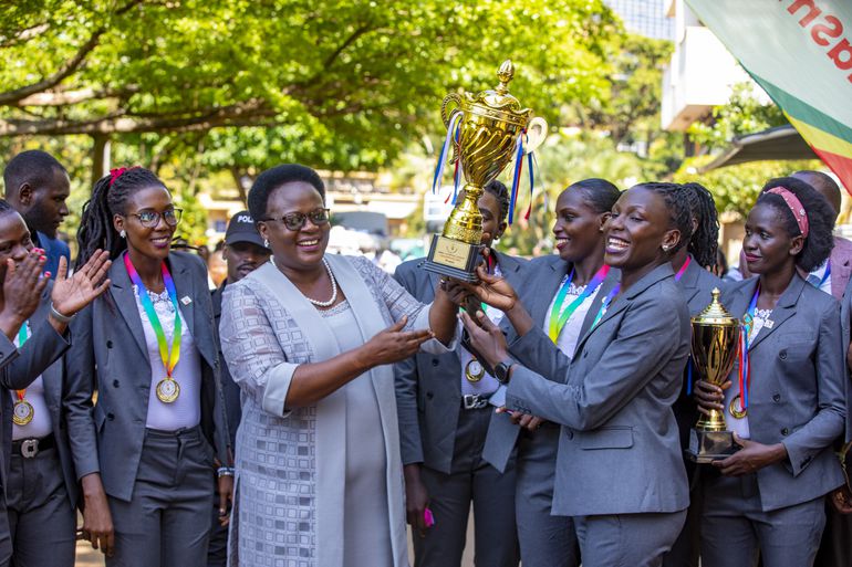The champions had a trophy parade from MTN Omondi Stadium, Lugogo, before receiving a guard of honour from the entire staff at City Hall.