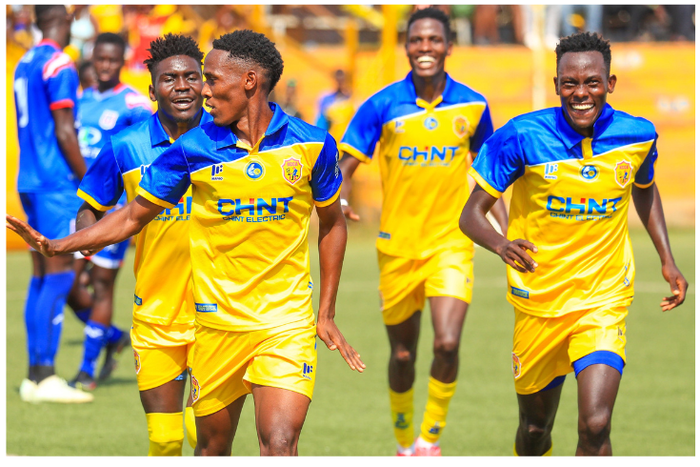 KCCA FC players celebrate Ashraf Mugume's goal against SC Villa /KCCA FC image